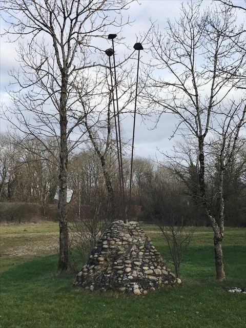 "Cairn aux pierres précieuse", est une sculpture située au bord de l'Ain, au niveau du pont de Gévrieux.