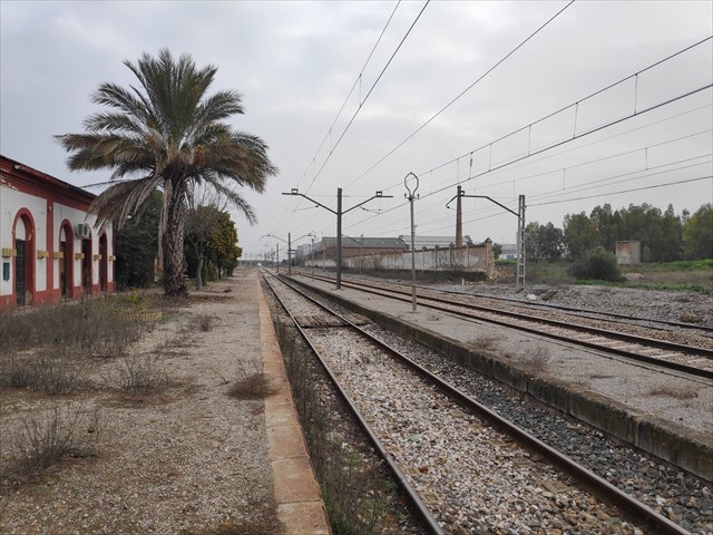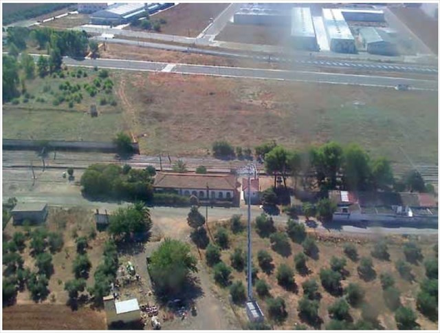 "La salida de la población, entre campos de olivos y bordes de la vía donde han brotado las chumberas, encuentra enseguida las tapias de otro polígono industrial, ya en el término municipal de Villafranca de Córdoba. Antes ha cortado, de nuevo, otro paso, esta vez una vía pecuaria, interrumpiendo su continuidad. Un tramo del ferrocarril transcurre en paralelo a la autovía entre El Carpio y Villafranca de Córdoba.