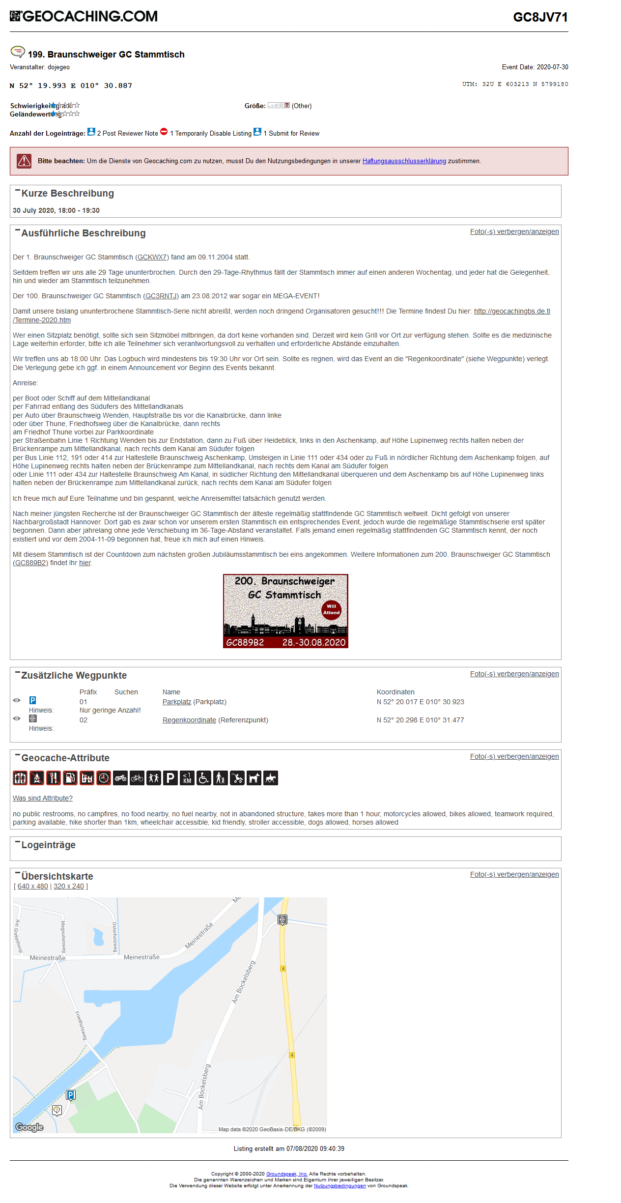 So sollte am 2020-07-30 der 199. Braunschweiger GC Stammtisch durchgeführt werden:
