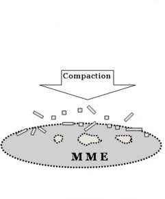 Compression, can come from any angle, but causes a round circular blob of MME to become flattened and have an elongated oval shape.