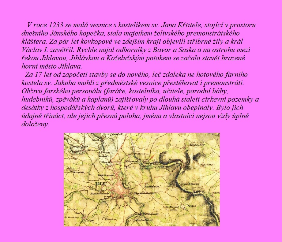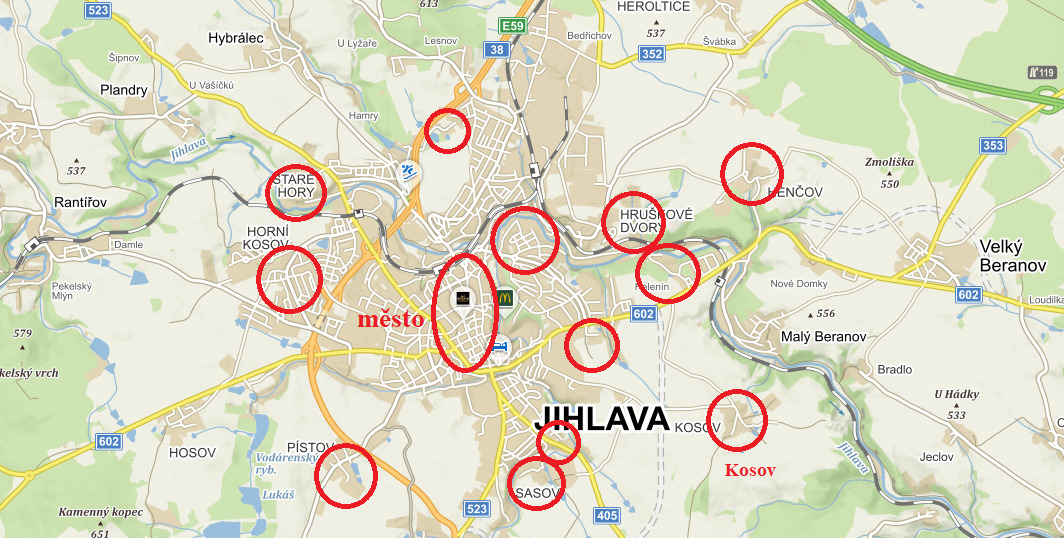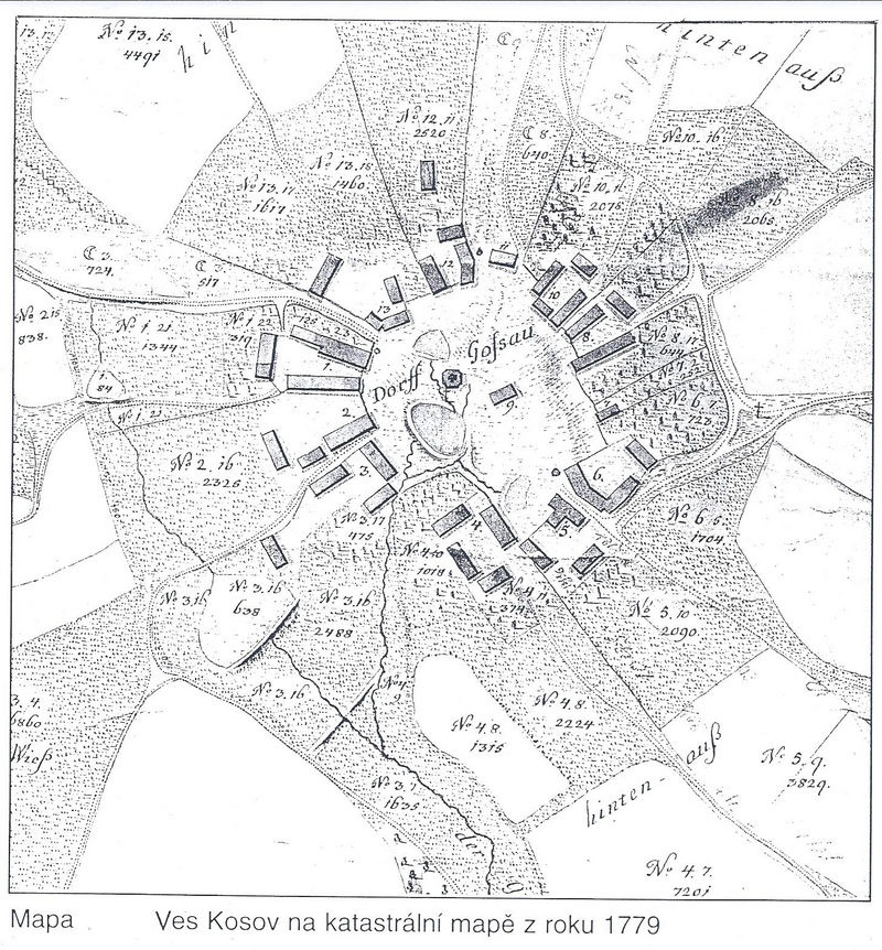 Vesnice Kossow, alias Gozzlini, Gozzau, Gossaw, tu prokazatelně vznikla již někdy ve 2. polovině 12. století a příslušela desátkem ještě ke kostelu sv. Jana Křtitele ve Staré Jihlavě. Měla důležité postavení vedle tzv. České stezky, která právě někde dole u Jánů odbočovala z dlouhé a významné stezky Haberské. Selská stavení potomků nebo následovníků jistého Johanese Lukschanderla, Augustina Teltschera, Recha Tomy, pana Pausra nebo Melehona se postupně seskupila do tzv. okrouhlice kolem kapličky. Některá stavení stojí dodnes. V katastru obce je na plánu z roku 1647 vyobrazeno i jedno z jihlavských popravišť.