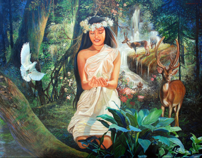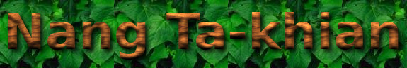 The Nang Ta-khian belong to a type of spirits or fairies related to trees and known generically in Thai folklore as Nang Mai (Lady of the Tree"). Legends in the Thai oral tradition say the spirit inhabits a Ta-khian tree and sometimes appears as a beautiful young woman wearing traditional Thai attire, usually in reddish or brownish colours, contrasting with Nang Tani who is mostly represented in a green dress.