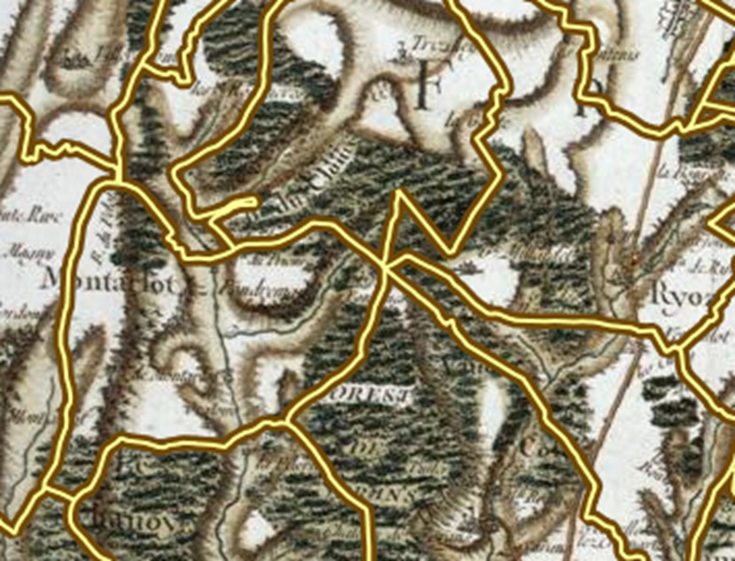 Pourquoi quatre bornes alors qu’à cet endroit précis on se retrouve en fait au croisement de cinq bans communaux. En ce lieu, les communes de RIOZ, NEUVELLES LES CROMARY, SORANS LES BREUREY, TRESILLEY ET MONTARLOT LES RIOZ se rejoignent. Déjà sur la carte de Cassini, cet endroit est identifié et il en est encore de même aujourd’hui sur les cartes d’Etat-Major.