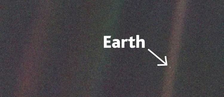 Olhem de novo para aquele ponto. É aqui, é a nossa casa, somos nós. Nele, todos os que ama, todos que conhece, qualquer um sobre quem você ouviu falar, cada ser humano que já existiu, viveram as suas vidas. O conjunto da nossa alegria e nosso sofrimento, milhares de religiões, ideologias e doutrinas econômicas confiantes, cada caçador e coletor, cada herói e cobarde, cada criador e destruidor da civilização, cada rei e agricultor, cada jovem casal de namorados, cada mãe e pai, criança cheia de esperança, inventor e explorador, cada professor de ética, cada político corrupto, cada "superestrela", cada "líder supremo", cada santo e pecador na história da nossa espécie viveu ali - em um grão de pó suspenso num raio de sol.