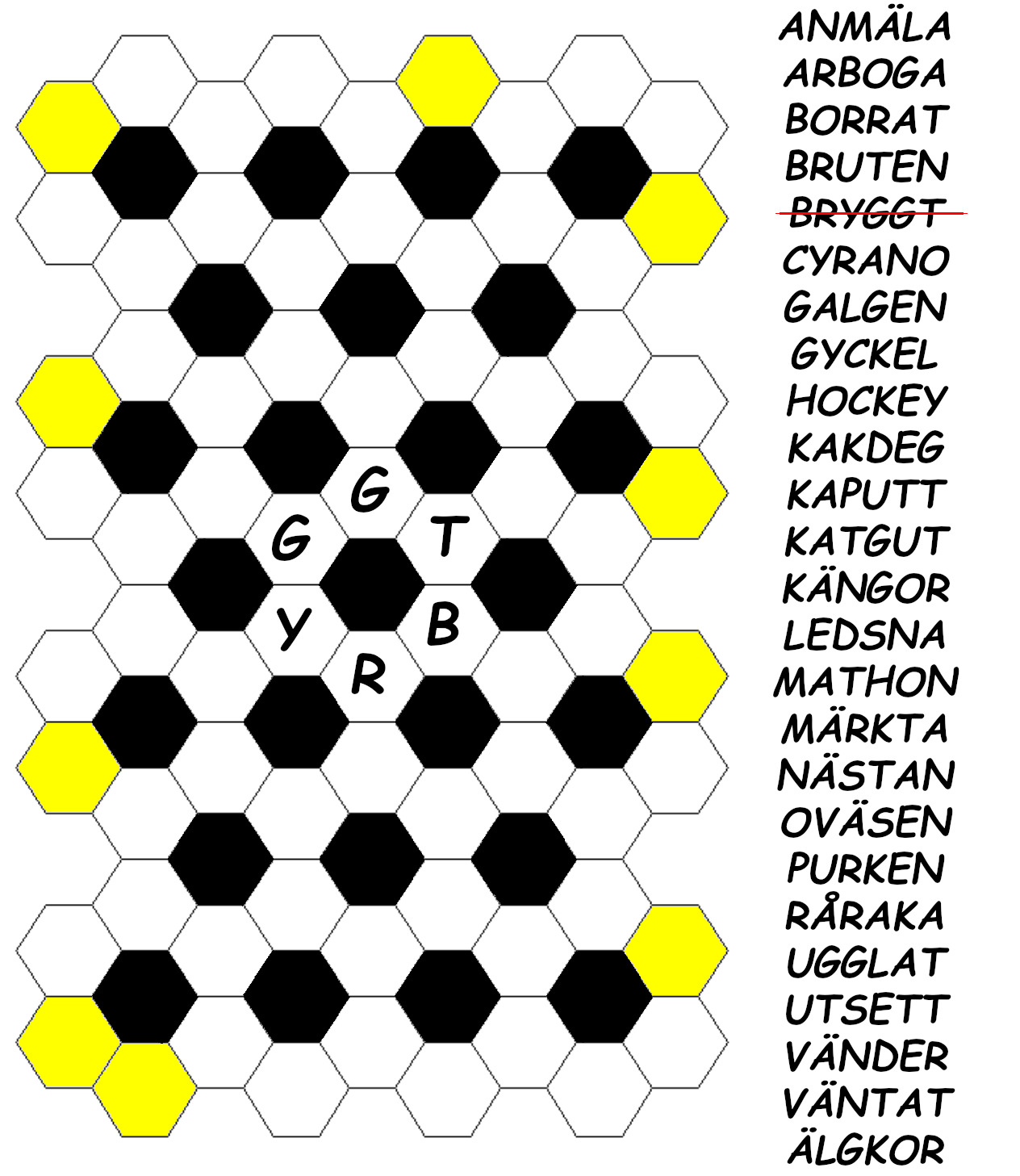 Lös problemet nedan. Ange bokstäverna i de gula rutorna i certituden. Skriv in dom i ordningen uppifrån och ner. Det kan inte bli enklare, eller hur Orden i listan till höger ska föras in i fältet nedan. Orden får skrivas medsols eller motsols så länge de passar in med de ord som redan är inskrivna.