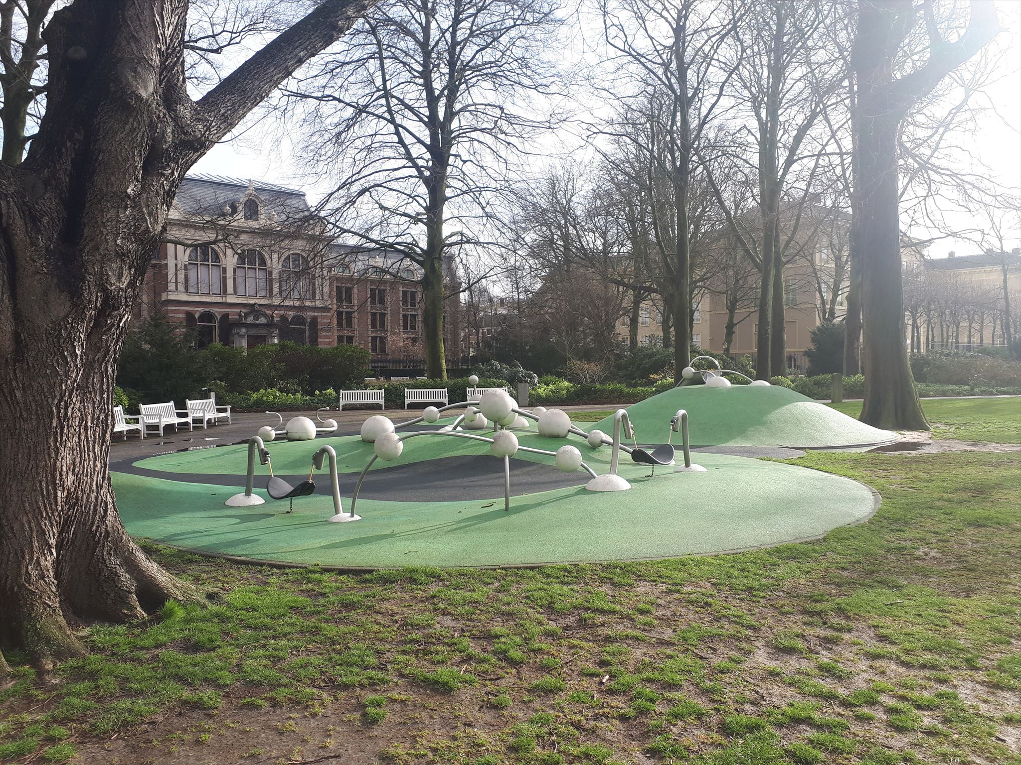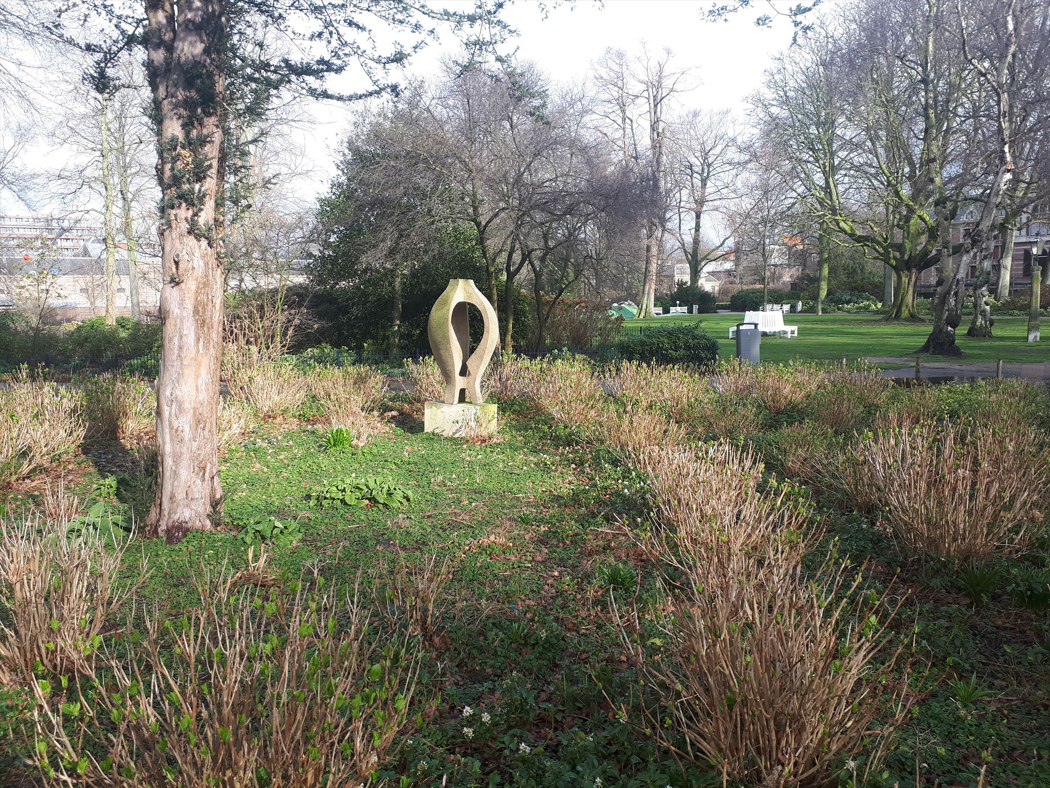 In 1785 from this garden the first ascencion of a Dutch manned balloon flight took place (see pen and ink drawing above). One of the sculptures in the park is a reminder of that event.
