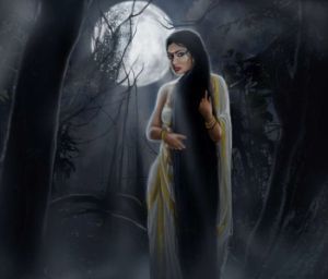 Although Yakshis are usually benevolent, there are also Yakshis with malevolent characteristics in Indian folklore .The ashoka tree is closely associated with Yakshis . The young girl at the foot of the tree is an ancient motif indicating fertility on the Indian Subcontinent. One of the recurring elements in Indian art, often found as gatekeepers in early Buddhist and Hindu temples, is a Yakshis with her foot on the trunk and her hands holding the branch of a stylized flowering ashoka or, less frequently, other tree with flowers or fruits.