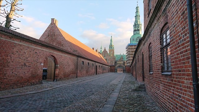 Gå mod slottet mod nord. Fortsæt over broen ind i den smalle gamle gade, Frederik II vej.