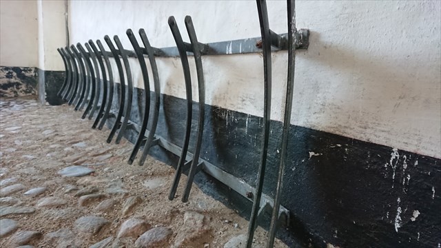 Straks når du er kommet gennem porten, drejer du skarpt til venstre langs muren.