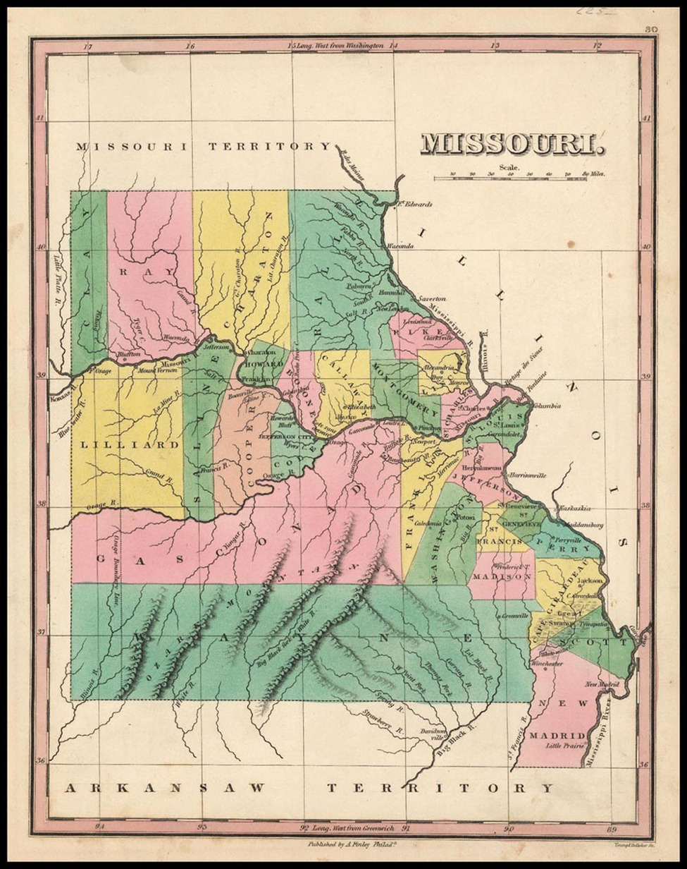 Missouri was part of the December 1803 Louisiana purchase and was admitted as a state on August 10, 1821. The western edge of Missouri was a straight line where the Kaw and Missouri rivers intersected. Clay County was formed from Ray county on January 2, 1822, extending from the Missouri River north to the Iowa line. It was twenty-one miles wide by one hundred miles long. At the time, the population of the county was about 1,200. Clay County was named in honor of U.S. Representative Henry Clay of Kentucky. The price for an acre of land was $1.25. It wasn’t until 1833 that the county was reduced to its present size.