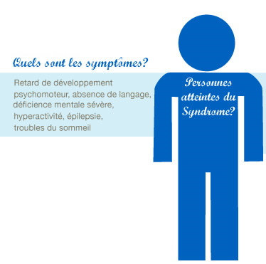 Le Syndrome d'XXXXXXXX est un trouble sévère du développement neurologique dont l'origine est portée par un chromosome. Ce syndrome porte le nom du médecin qui l'a décrit pour la première fois en 1965. L’anomalie chromosomique intervient lors de la conception. A l’heure actuelle, aucun examen pratiqué durant la grossesse ne permet de le déceler. Les personnes atteintes doivent être prises en charge dès le plus jeune âge avec des thérapies telle que l'orthophonie, la kinésithérapie et la psychomotricité. Des traitements médicamenteux existent pour traiter l'épilepsie, les myoclonies et les troubles du sommeil.