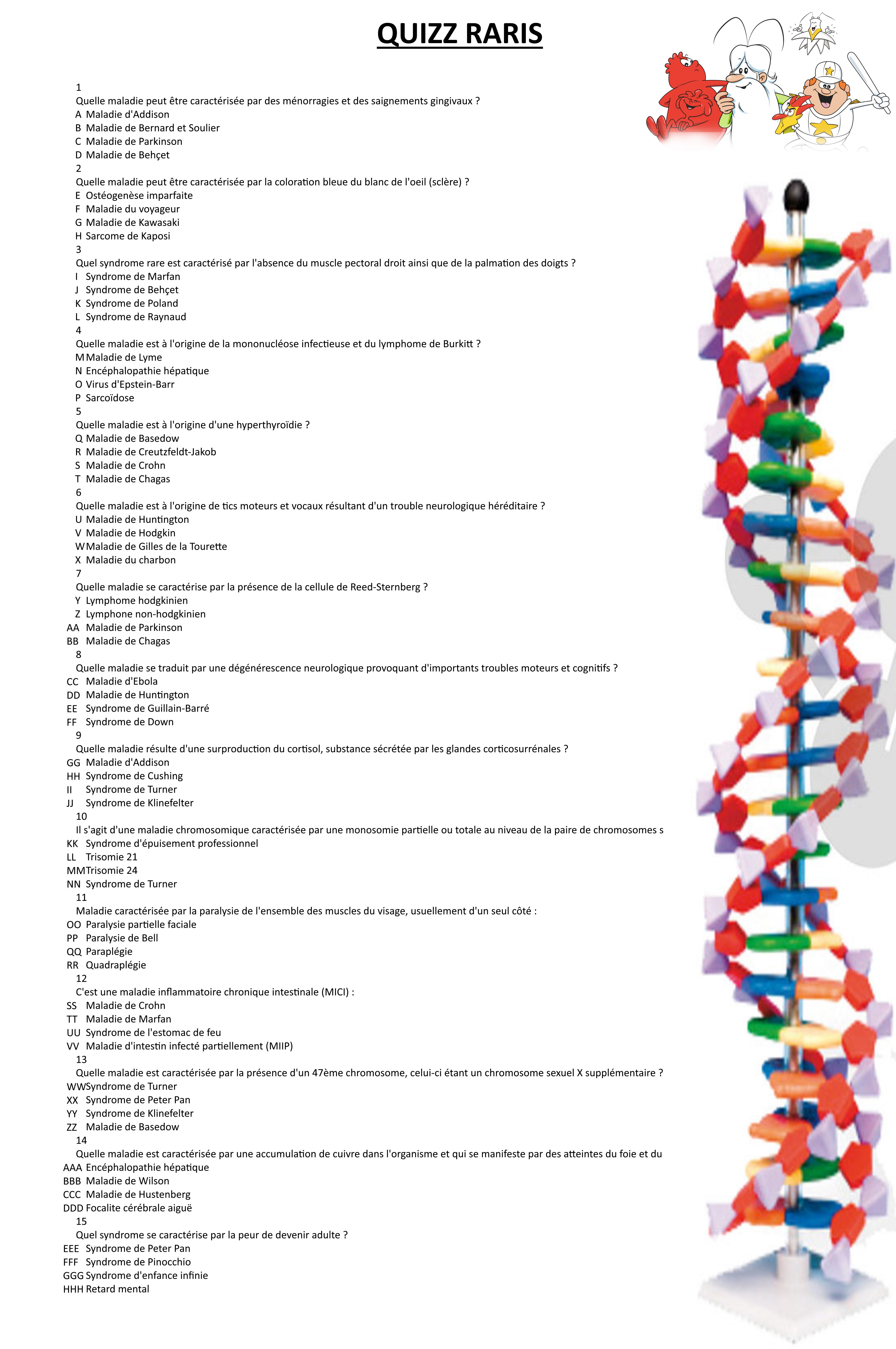 Pour résoudre la deuxième partie de l’énigme, il vous faudra faire correspondre les maladies avec le descriptif et les symptômes. (rentrez les trois noms tout attachés dans certitude)