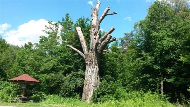 Tento strom mnoho z Vás zná, byť i nevědomky. Určitě jste kolem něj někdy šli a dávali si kávu a svačinku na posezení v lese. Pro mnoho petřvalďanů je smrt tohoto stromu smutnou zprávou, protože jim toto místo evokuje mnoho vzpomínek. Někdo zde vzal na romantický večer svou první lásku, někteří zde zažili první polibek. Další zde trávili čas se svými blízkými. A někteří zde získají bonusové číslo B k sérii Petřvaldské Pomníky (pomsta pro ty, kteří nečtou listingy), to opište z vnitřní strany víčka keše. Když se kohokoliv zeptáte, řekne Vám, že zde tento kousek byl snad odjakživa...