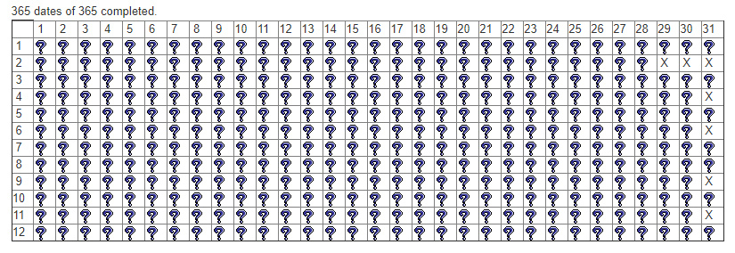 2. Ako druhú splnenú podmienku musíte mat nájdenú aspon jednu mystery kešku na každý den v roku (okrem 29.2.)