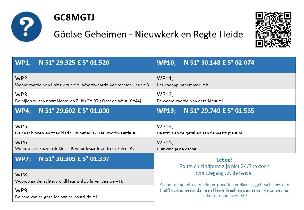 Deze cache brengt je over landgoed Nieuwkerk en de Regte Heide, een mooi gebied om eens rond te struinen! Van mooie uitzichten over de hei en de meren tot prehistorische schatten... Trek je wandelschoenen aan en waai eens lekker uit!