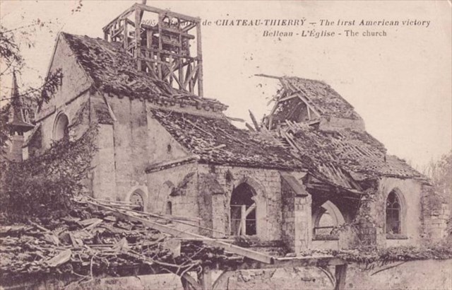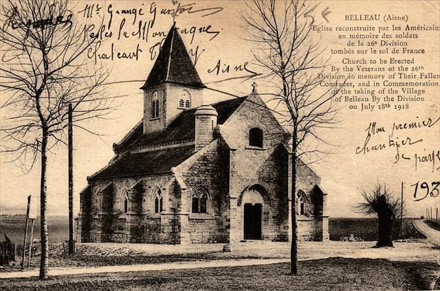 The present church was built by veterans of the 26th Division of the American Expeditionary Force in memory of their fallen comrades in France. This battle was so important to them that every man of the 26th American Division gave one day's pay to rebuild the church.