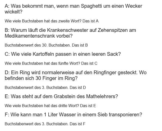 Notiert die Bonuszahlen A, B, C, D, E und F. Diese werden für den Bonus benötigt. Die Formel dazu befindet sich im Bonus.