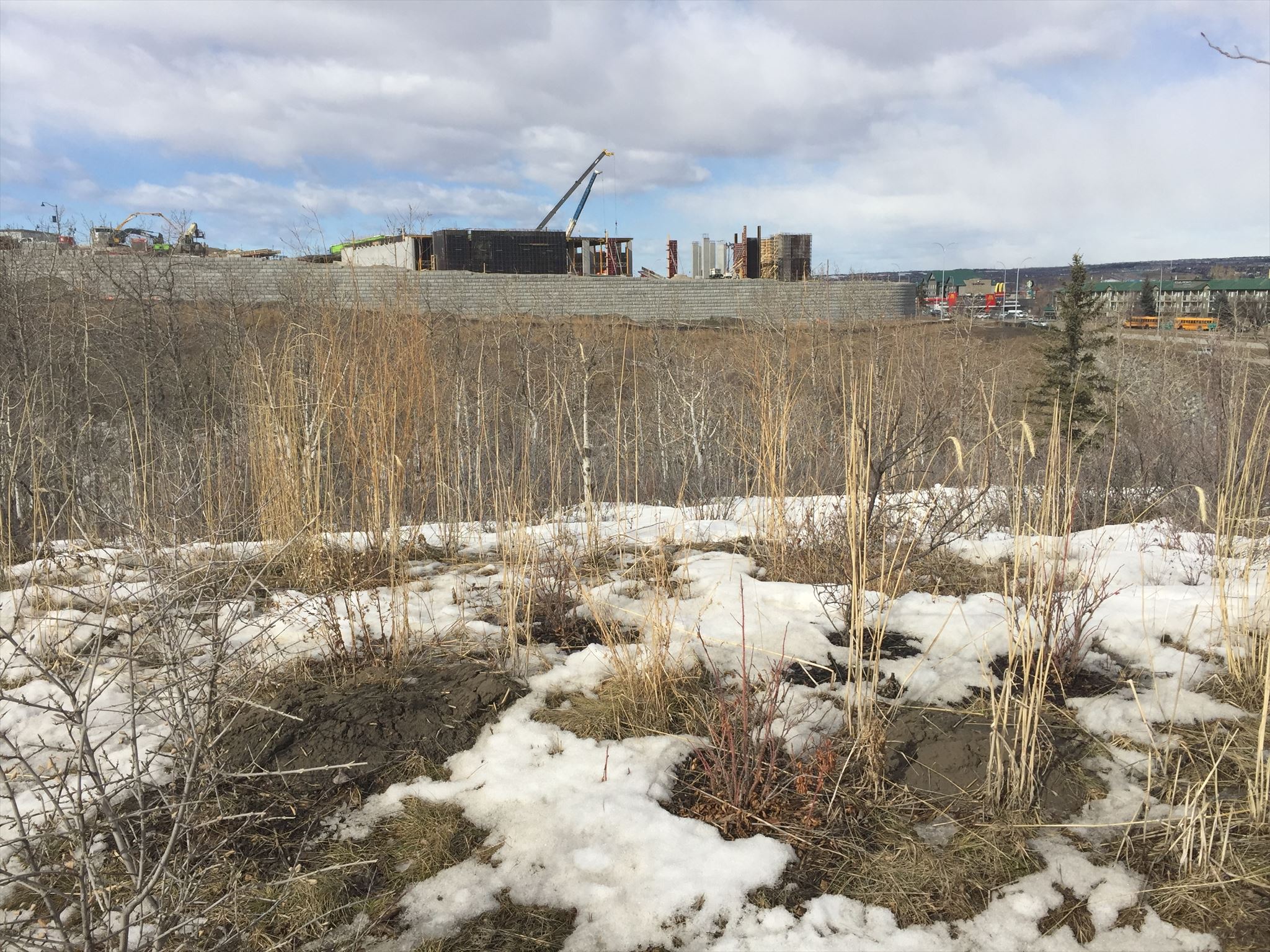 This is a newly developed area in Calgary. Take a drive along Na'a Drive and see the sites. A little to the west of the cache is a ravine. Take a peek and see if you can spot any wildlife.