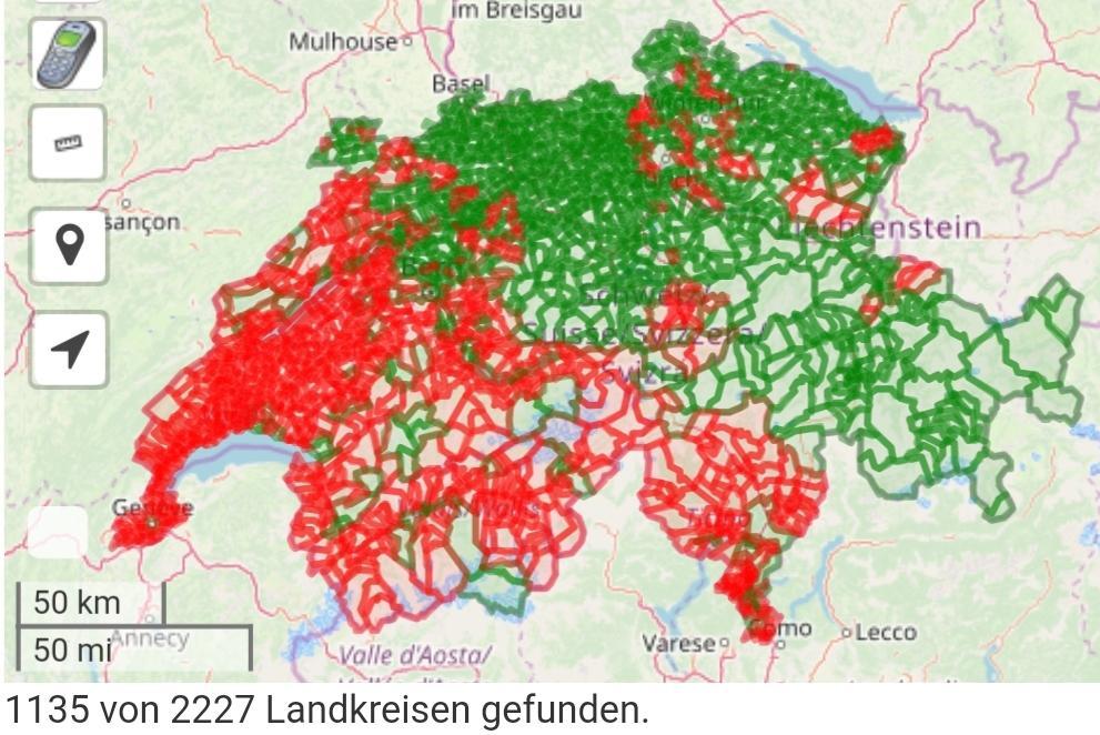 Mindestens je einen Fundlog in 1000 verschiedenen Gemeinden der Schweiz.