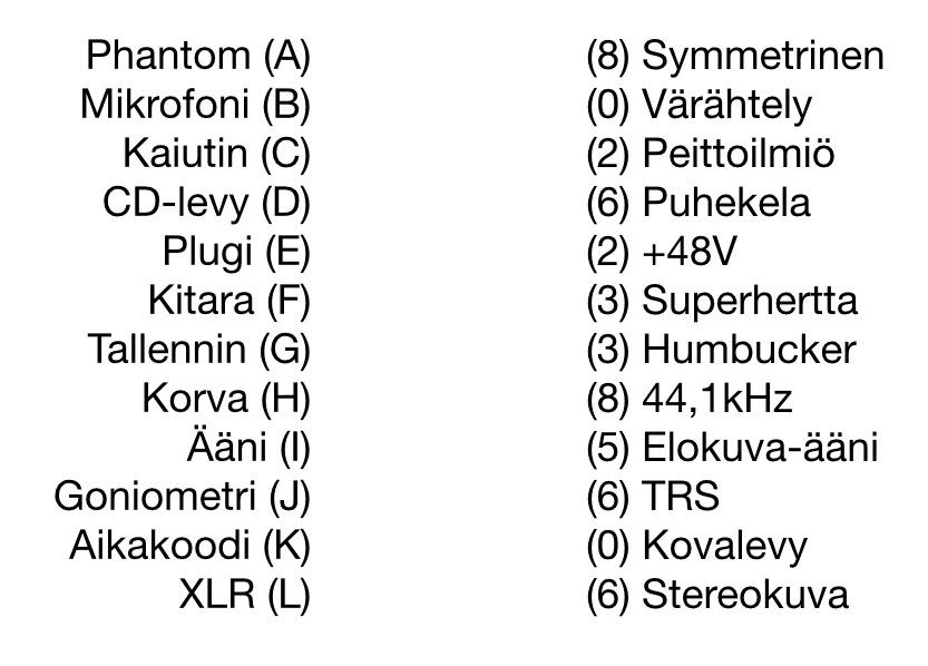 Yhdistä toisiinsa liittyvät asiat. Kun olet saanut kaikki yhdistettyä ilman, että joku pari ei sovi yhteen, kokeile mitä checkeri olisi mieltä =)