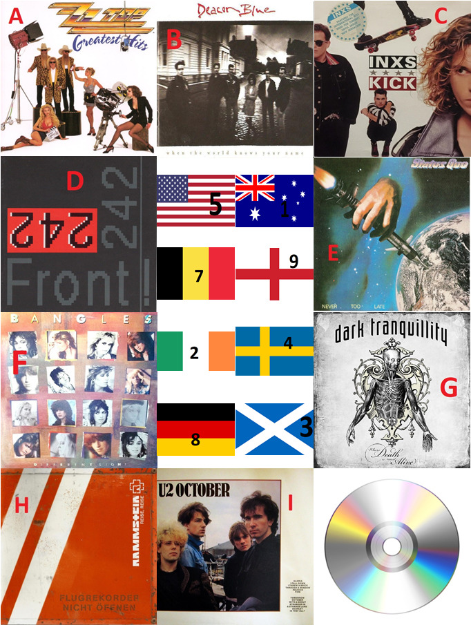 Voor de eerste selectie willekeurig een aantal CD uit het rek gepakt, als je weet uit welk land de groep afkomstig is kun je de puzzel oplossen.