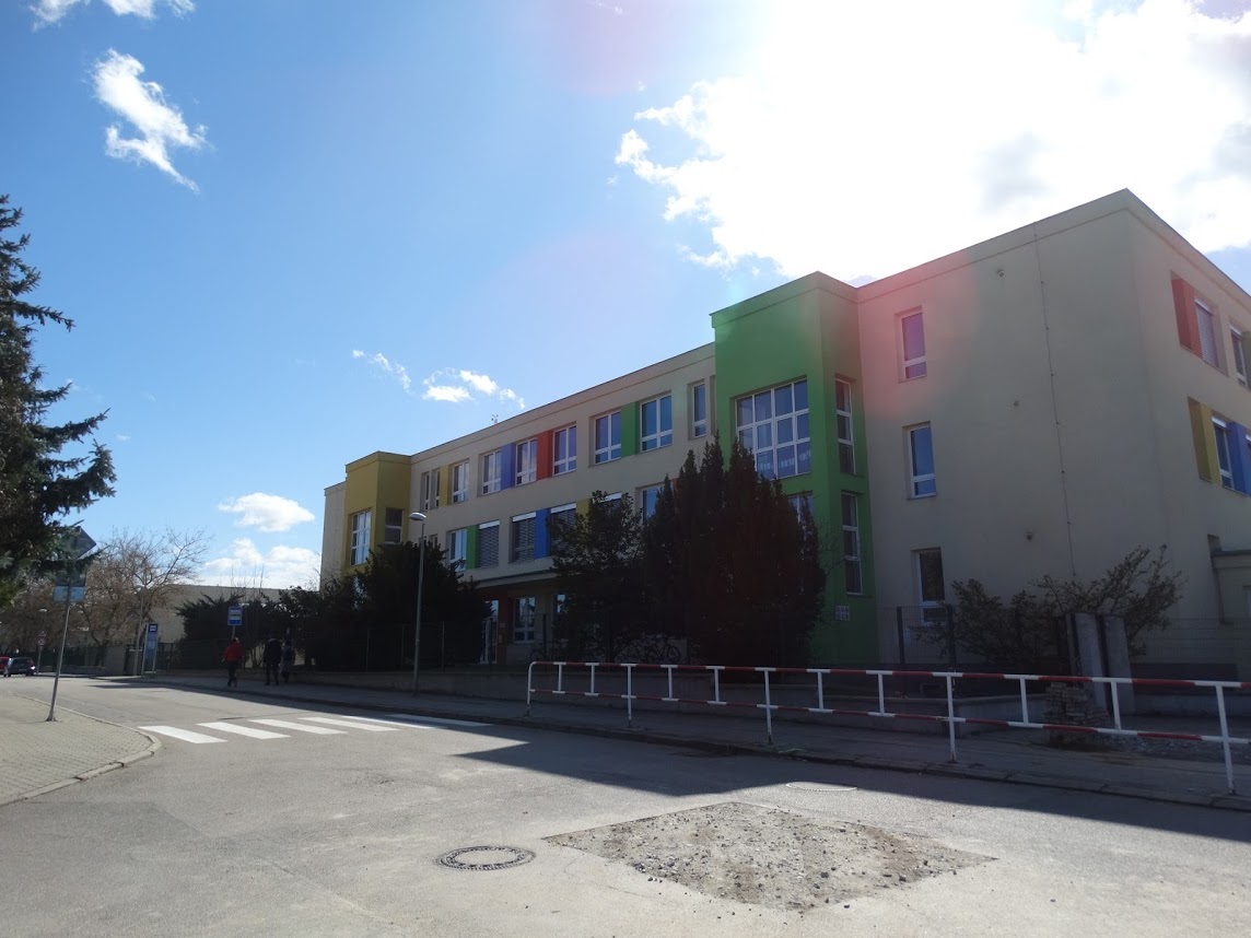 Stojíte před brankou knihovny a po levé ruce je budova kuchyně mateřské školy. Počet velkých oken vám dá čislo A.