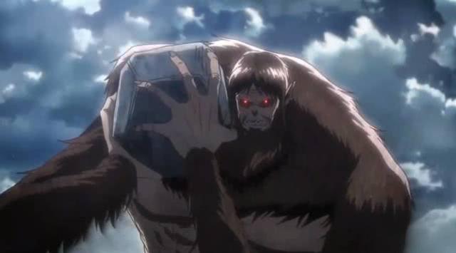 This cache is a trial of intelligence. In the animation, Beast Titan (獣の巨人) is the one who can talk and think. He can command other pure Titans to attack human.