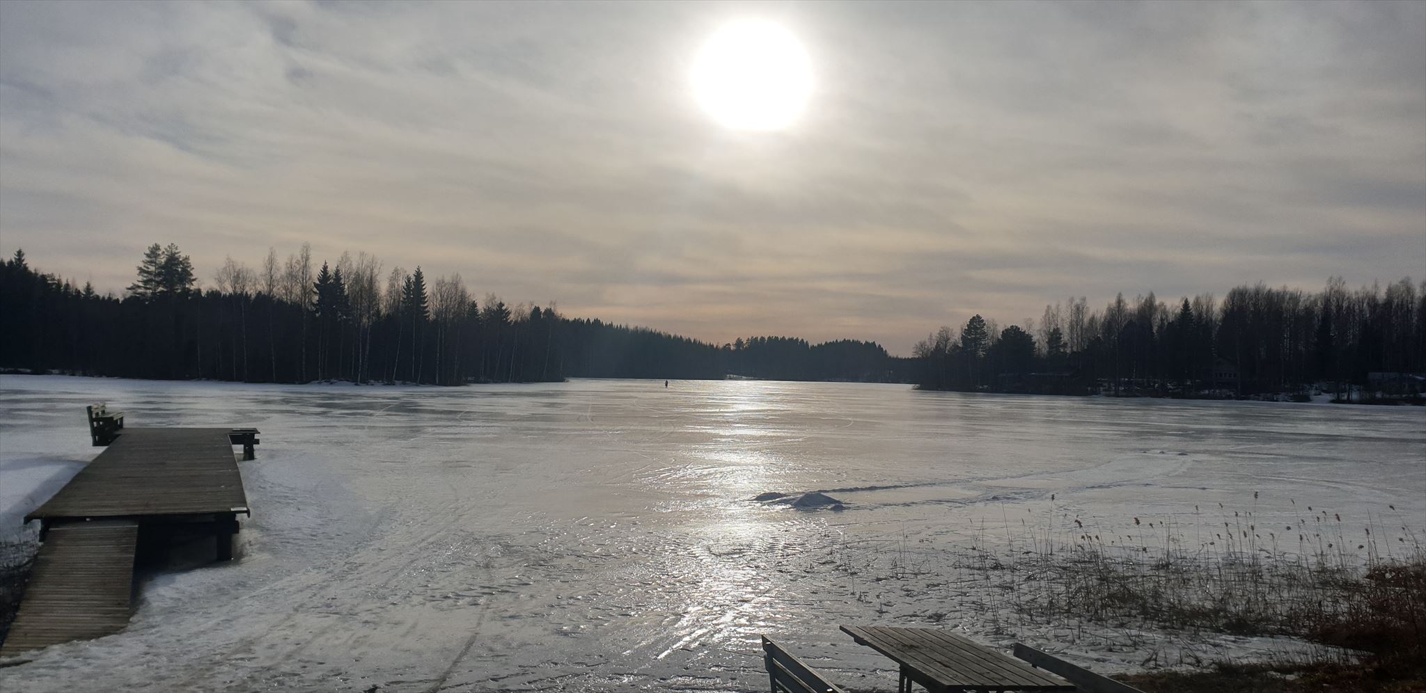 Näkymä Juanlammen uimarannalla 22.3.2020