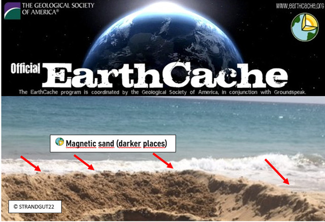 - Betrachte den Strandabschnitt genauer. Sind die dunklen Stellen des magnetischen Sandes gleichmäßig über den Strand verteilt oder gibt es Flächen mit einer erhöhten Ansammlung? Was mag der Grund dafür sein?