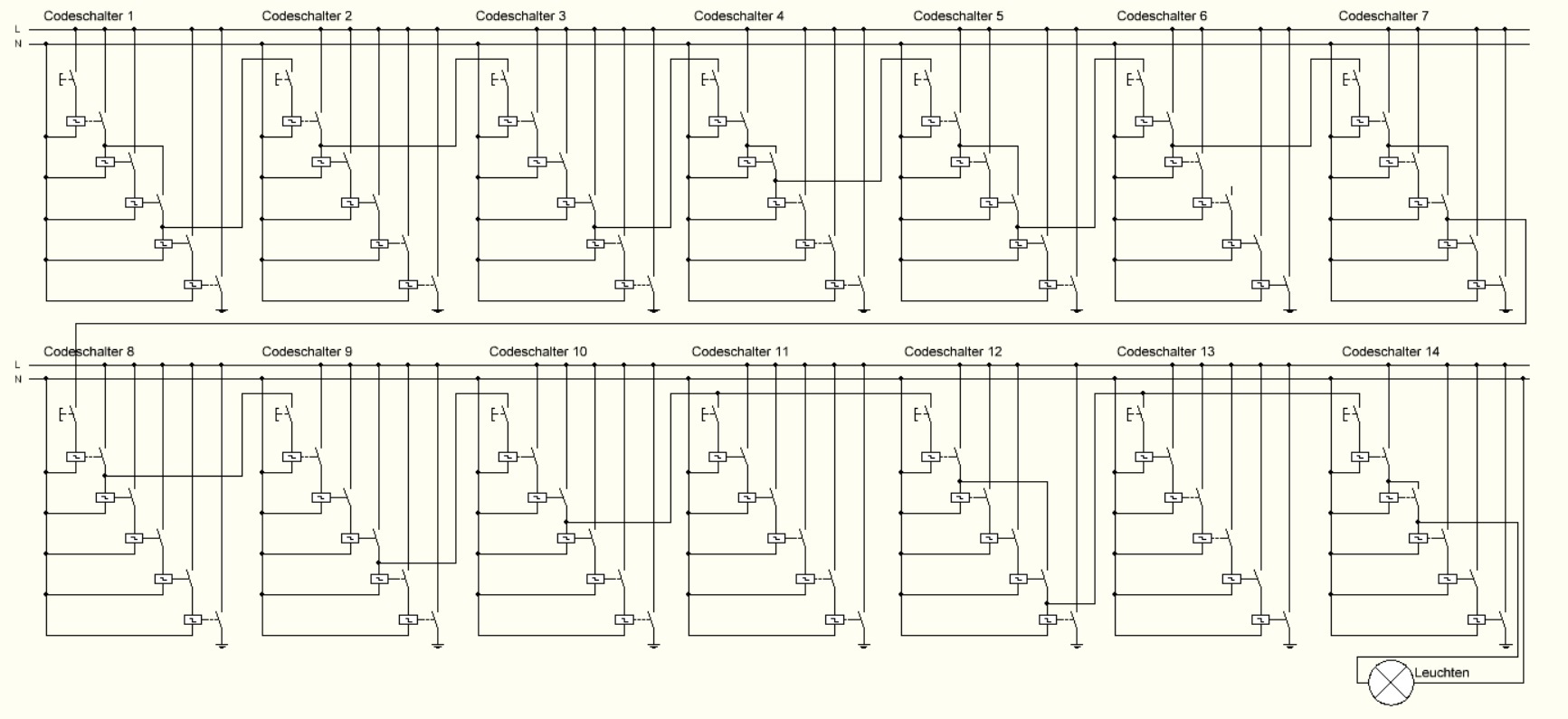 Tastet jemand einen der 14 hintereinander geschalteten Codeschalter zu oft, macht es klack und die komplette Absicherung fliegt raus. Tja Pech gehabt.