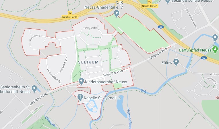 In Neuss hat sich ja schon so einiges verirrt. So liegt der "Selikumer Wald" in Reuschenberg, während sich das "Schloss Reuschenberg" in Selikum und der "Reuschenberger Busch/Wald" im Stadtteil Pomona befinden.