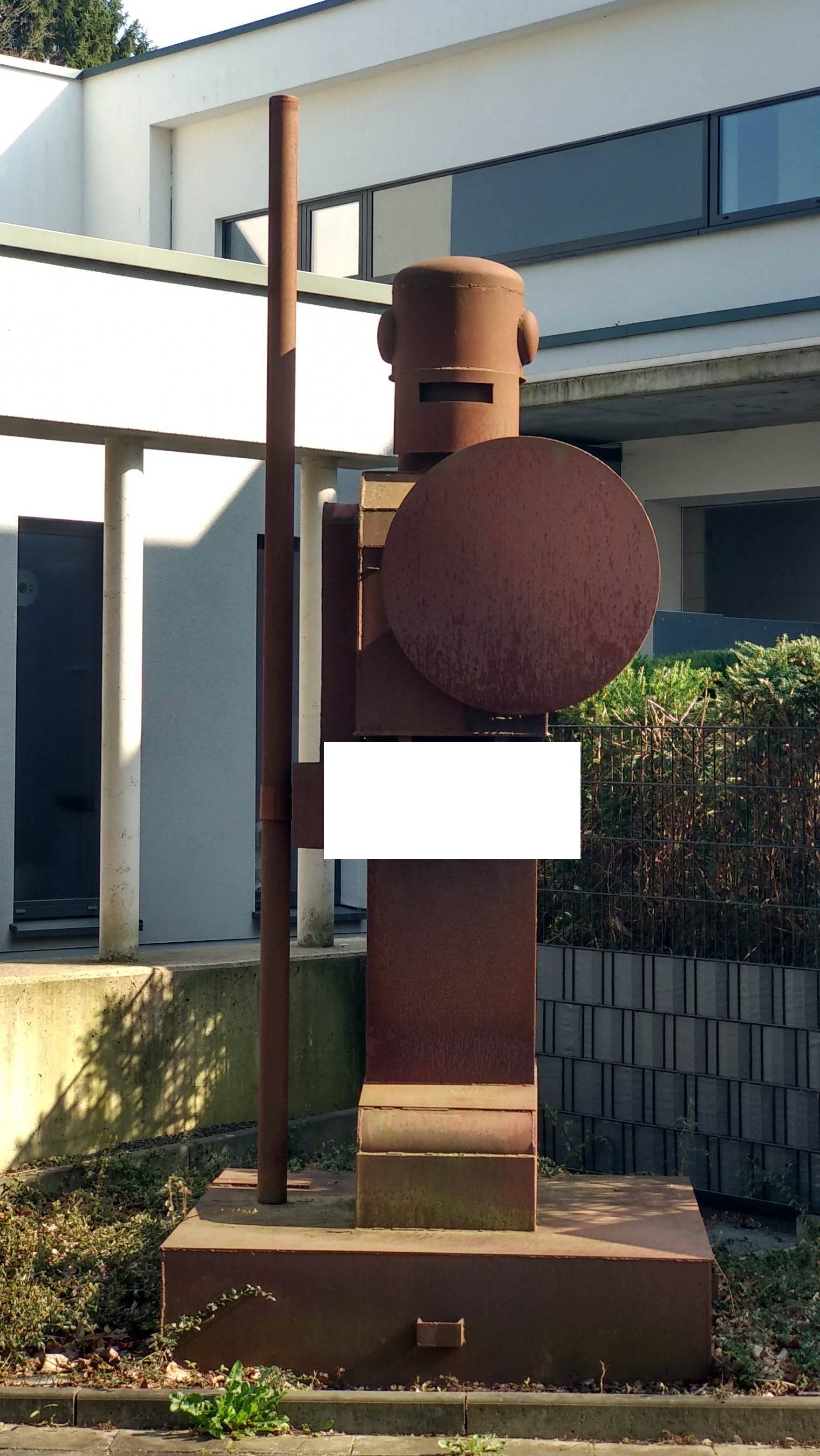 Der hier abgebildete Wächter hat sich in ein Wohngebiet in Selikum verirrt*, wo er einsam und allein am Strassenrand steht, fernab von einem Museum oder öffentlichen Gebäude.