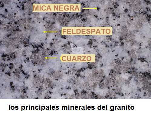 Los principales minerales que constituyen un granito son el cuarzo, los feldespatos alcalinos, los feldespatos plagioclases y otros minerales como las micas o el anfibio. El equivalente volcánico del granito es la rizota, una roca más rara.