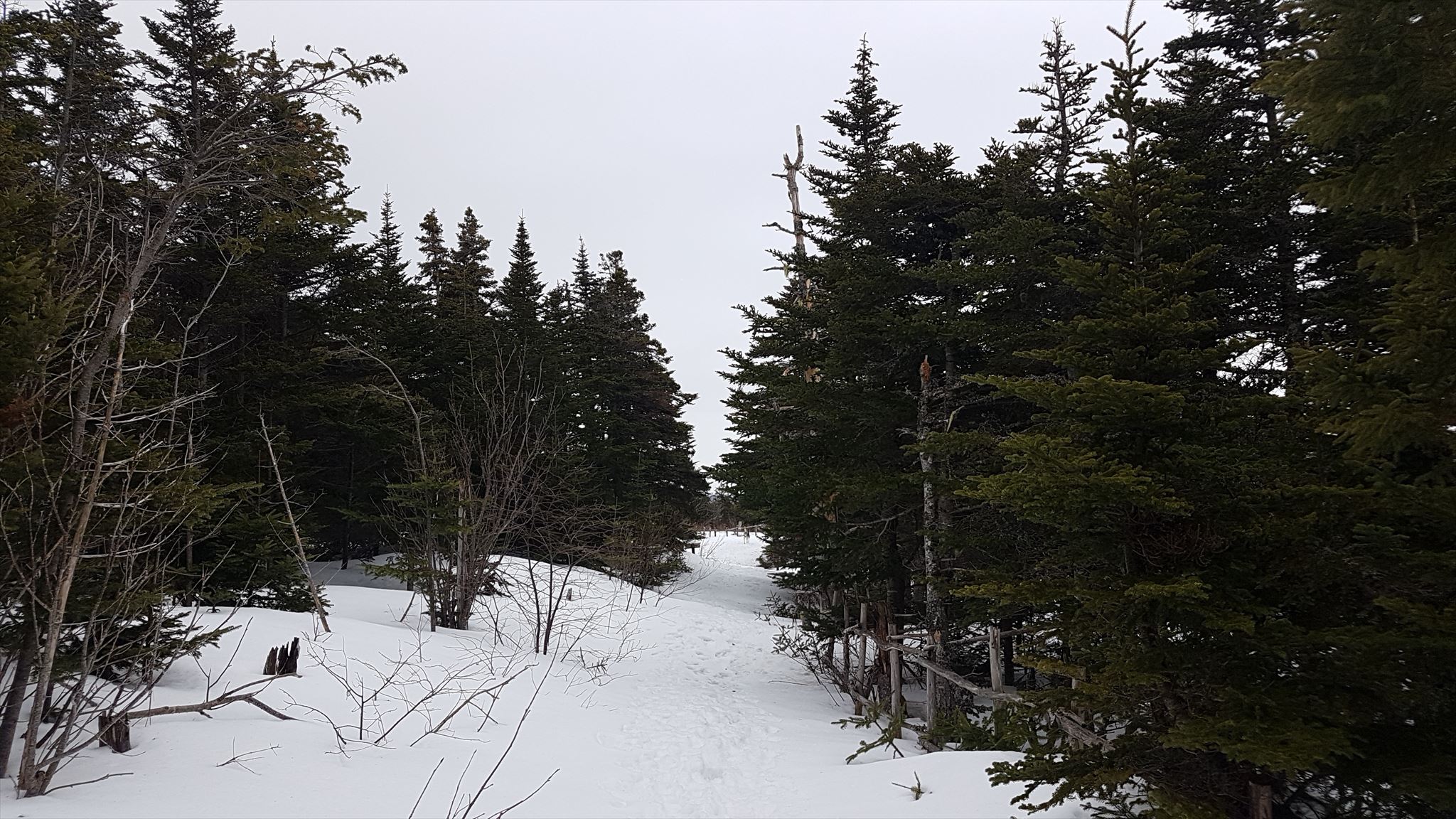 If you come for this one from the Gallows Cove Road / Torbay entrance to the Father Troy Trail, you will first come to a three way junction about 200m from this cache. The far left is private property; the far right is the official East Coast Trail to Whale Cove, and then eventually Church Cove.