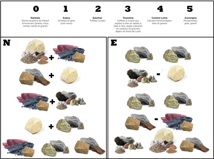 Dans le vignoble de Saumur et de Touraine, le sous-sol est composé de craie tuffeau et de sables et argiles à silex du Bassin Parisien.