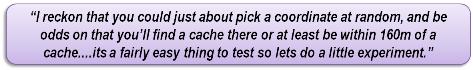 You know, they say that the southwest is "Cache Rich" - thousands of caches of all sizes in just about every available spot. 19,475 at the last count. 2543 Mystery caches like this one. Every footpath, every corner of every town. Particularly in Devon. You hear stories all the time of caches being found by accident or failing review due to insufficent separation.