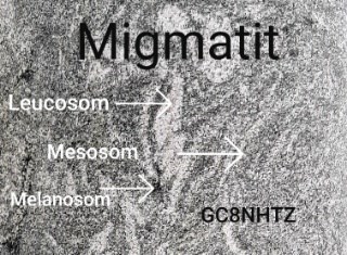 Wie bereits erwähnt schmelzen bei der Magmabildung zuerst die hellen Mineralien (Quarz und Feldspate), denn sie haben den niedrigsten Schmelzpunkt. Sie werden als Leucosom bezeichnet. Die anderen umgebenden dunkleren Mineralien bleiben noch fest. Sie werden als Melanosom bezeichnet. Das Mesosom bezeichnet das mehr oder weniger veränderte Ausgangsgestein. Migmatite entstehen hauptsächlich bei Gebirgsbildungen, bei denen Gesteine in große Tiefen versenkt werden. Durch größer werdenden Druck und steigende Temperaturen schmelzen dann die ersten Mineralien. Das beginnt an der Oberfläche der Mineralien und es bildet sich dabei ein dünner kriechfähiger Film von Schmelze, der sich entlang der Korngrenzen bewegt und sich in den Ecken sammelt. Nach und nach verbinden sich die winzigen Schmelztröpfchen zu größeren Ansammlungen und trennen sich dabei von den dunklen, noch festen Mineralien. An dieser Trennung von hellen und dunklen Mineralien erkennt man einen Migmatit. Dieser Effekt ist an der Gesteinsoberfläche mit bloßem Auge zu erkennen.