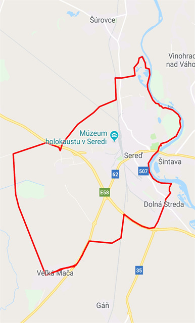 Chcel by som Vás pozvať na športovo FTF-kový event. ODPORÚČAM PRINIESŤ BICYKEL. Počas eventu plánujem publikovať cyklo sériu okolo Serede. Približná trasa je znázornená na mape. Celá cesta na bicykli pre mňa trvá cca 1,5h bez lovu takže aj s lovom to môže trvať do 2h maximálne.
