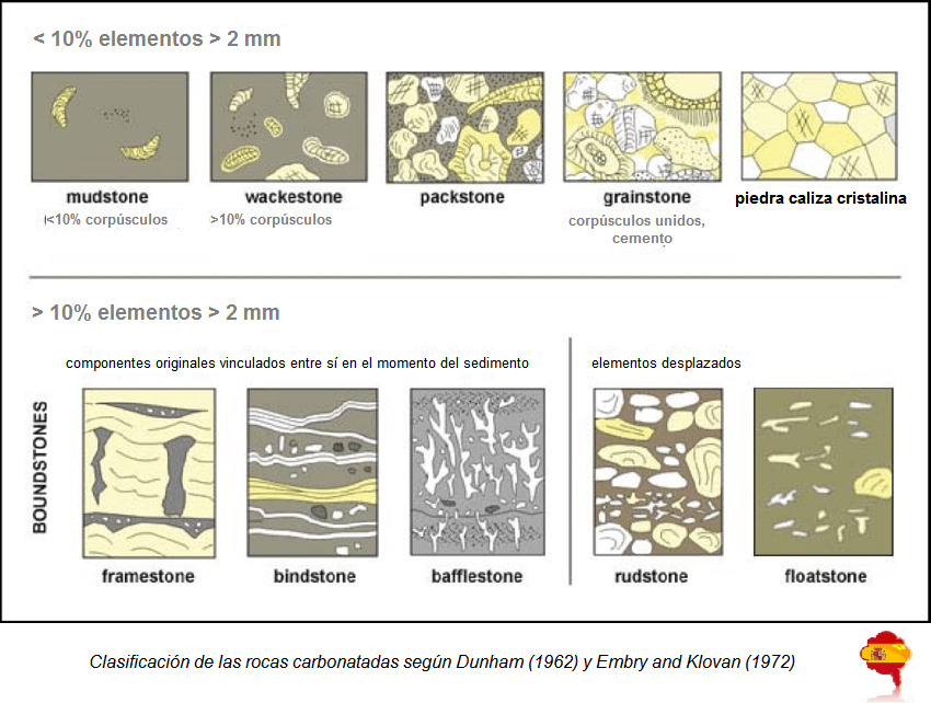 Si la roca es biológica, se utiliza preferiblemente la clasificación textural. Se mira el «lodo» y los «elementos»