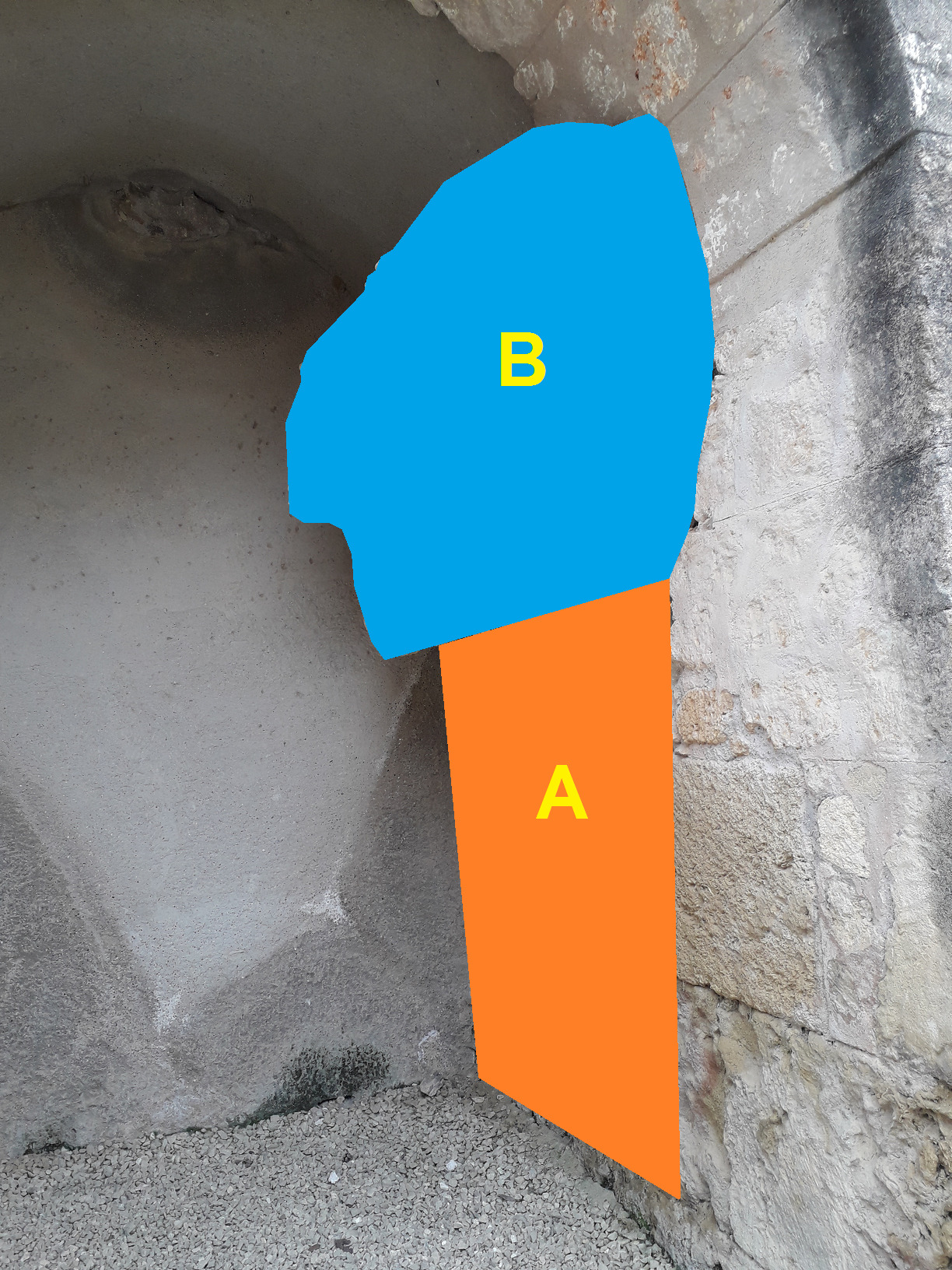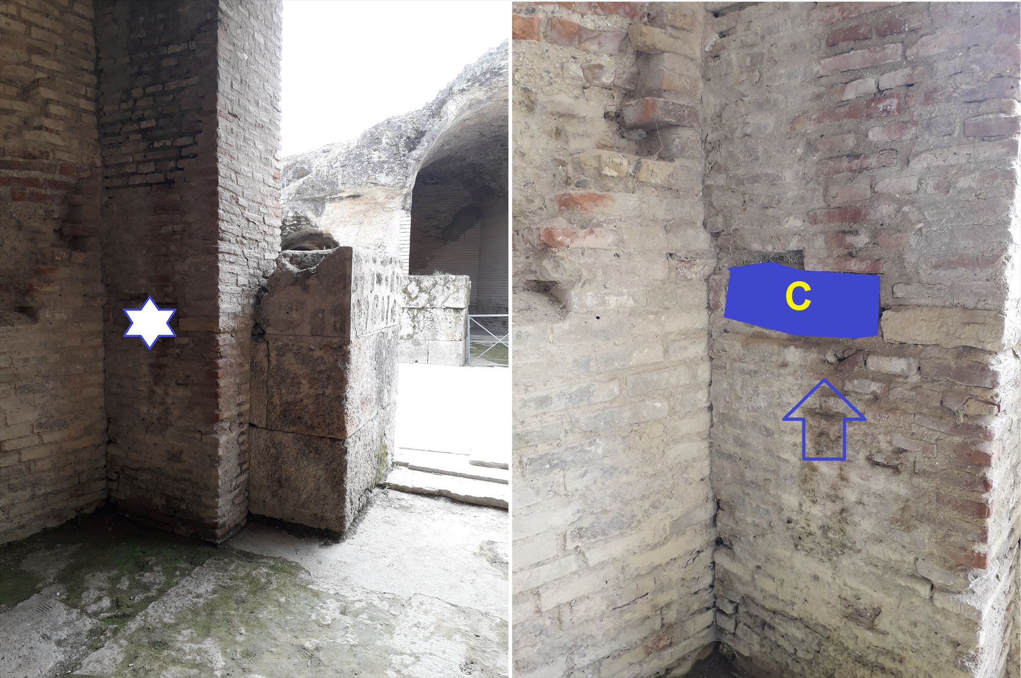 As you leave the amphitheatre, take the back alley and turn right immediately. You observe the photo, focus on area C.