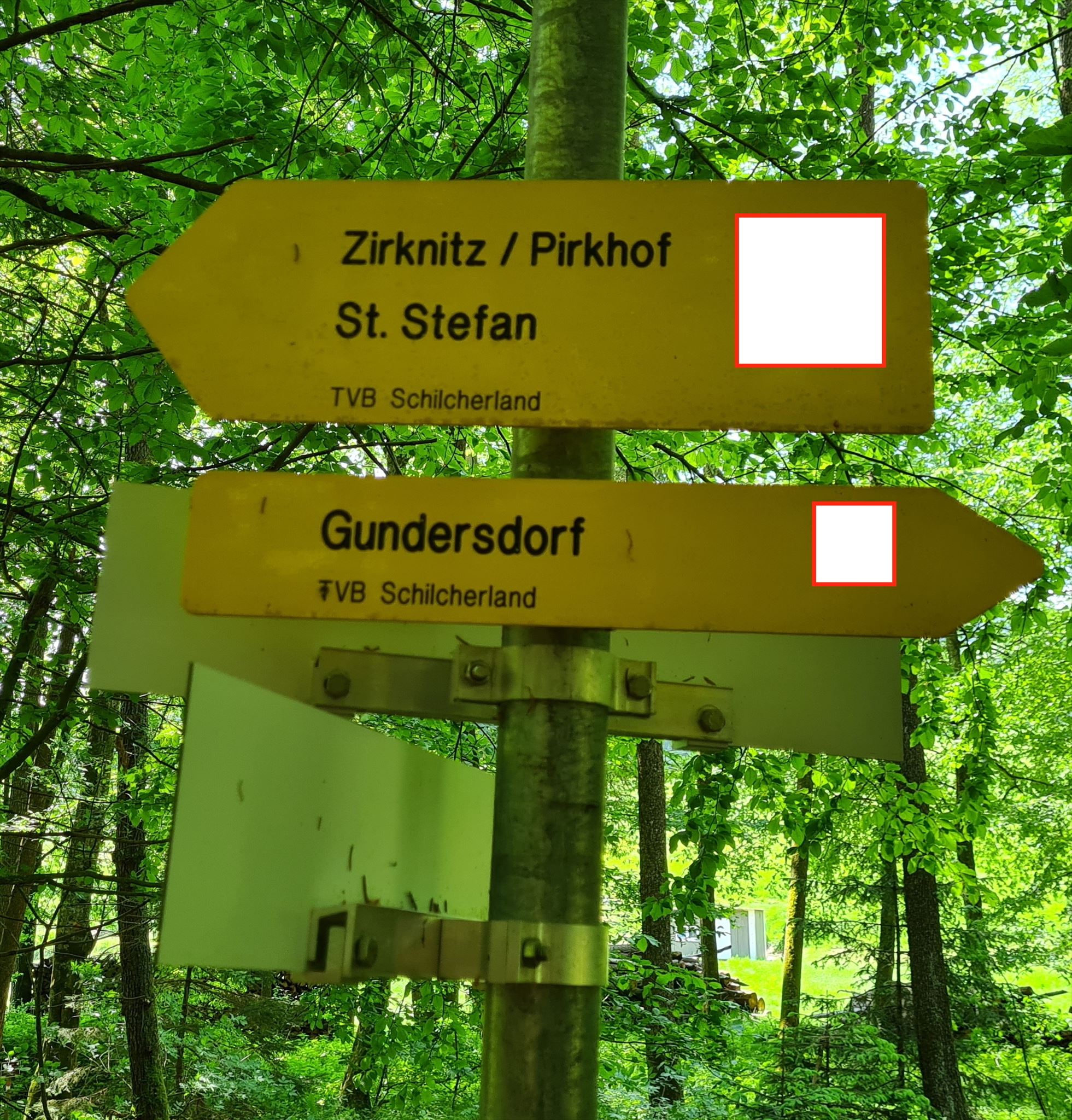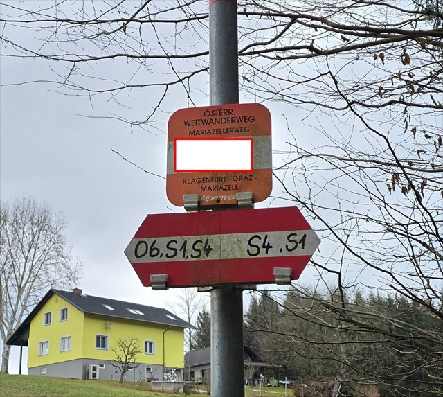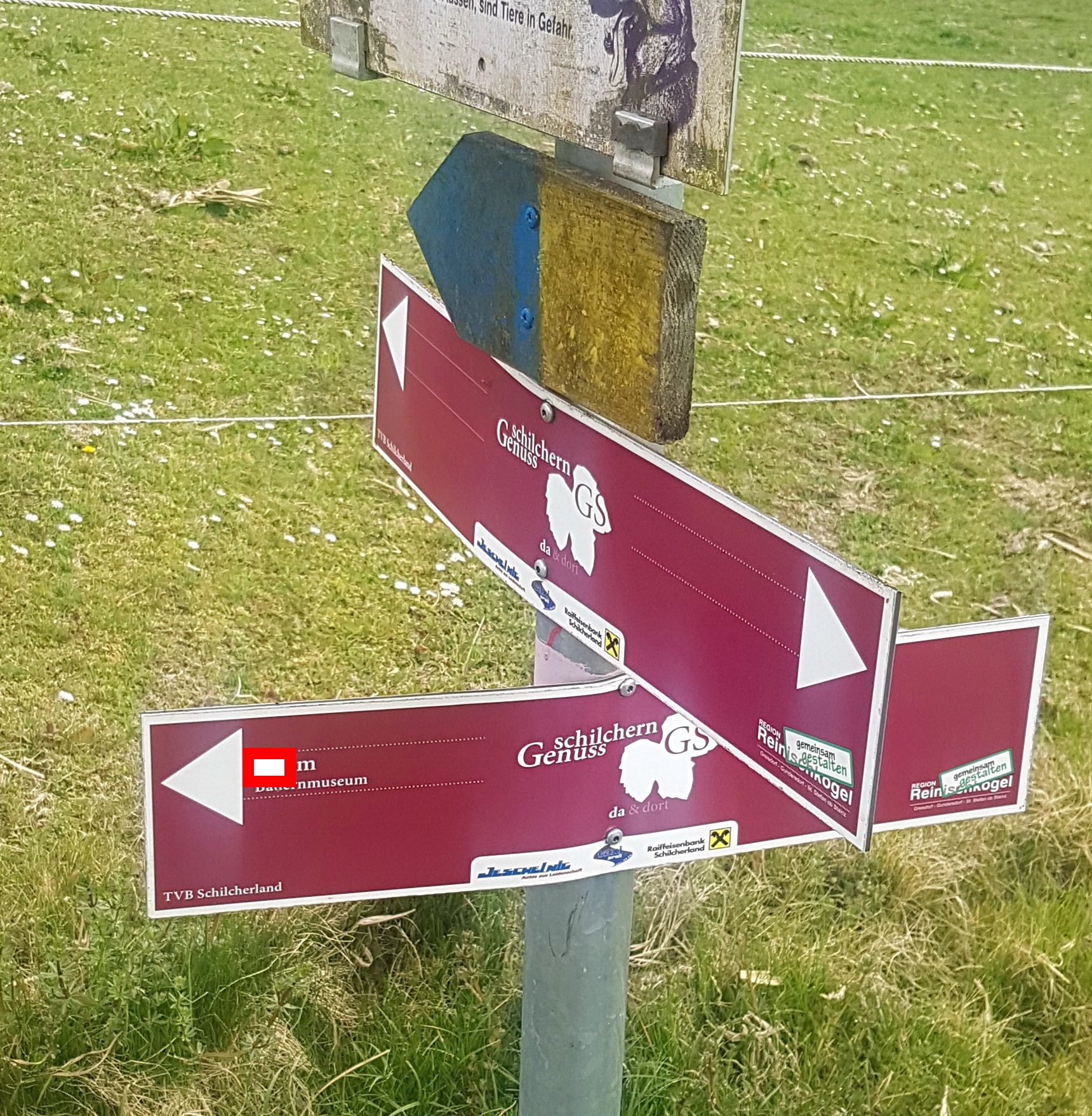 Hier findest du mehrere Wegweiser. Gesucht ist der nach St. Stefan.