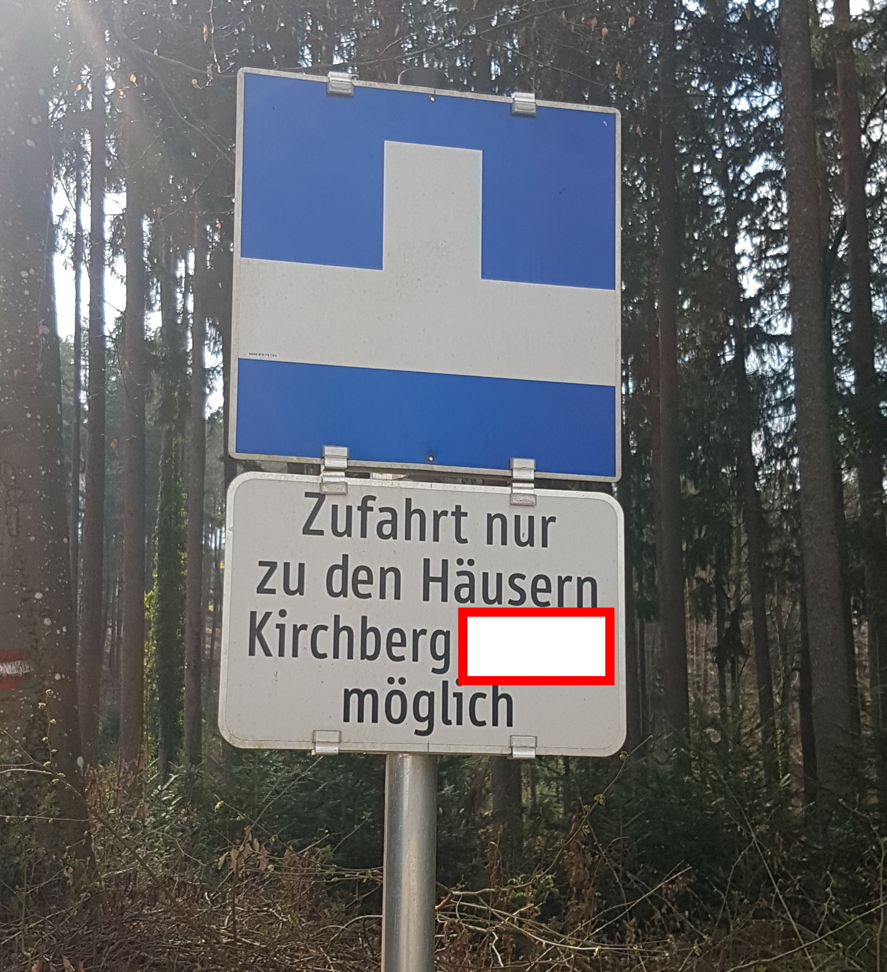 Hier findest du ein Verkehrsschild Sackgasse mit einem Zusatzschild.