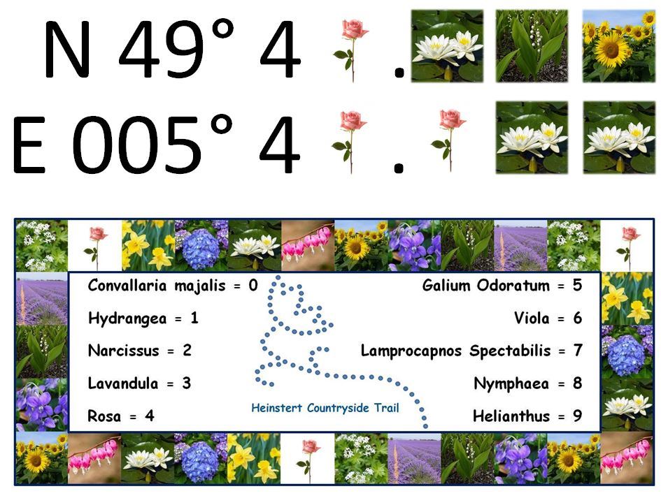 HCT takes you through the village of Heinstert (parking on the church square), in the woods, on the former tram route (indeed ... in the past, there was a tram here) and in the surrounding countryside. Outside the village, you will mainly be on trails with 4 short passages on the road (between caches 9 and 10, 31 and 32 and 43 to 45) as well as crossing the Route de Habay twice outside the village (between caches 24 and 25, 61 and 62). Please, be particularly careful in these places because, if the traffic is not dense, some cars can be fast. For those who would prefer to split this tour, spending a few additional steps, it can be divided into 3 loops: A -11km-, B -7 km- and C -6 km- (the mileage is calculated on the basis of a loop hike with a start at the square in front of the church).
