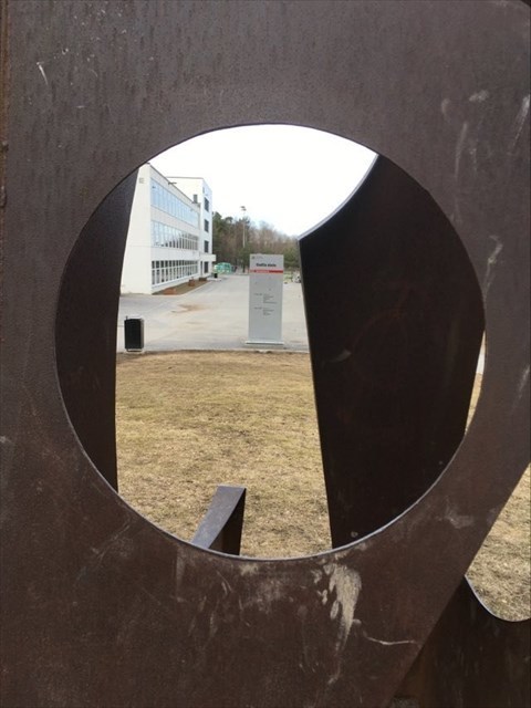WP1. N59 54.395 E 10 50.841 Godlia skole. Ved WP1 står det en spesiell statue. Ca. hvor høy er den?