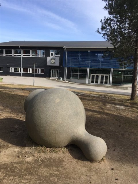 Oppsal skole. Ved WP3 er det noen steinskulpturer. Hvor mange?