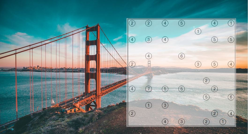 Entre deux îles, il ne peut pas y avoir plus de deux ponts. Les traits peuvent être horizontaux et verticaux (pas en diagonale). Ils ne doivent pas se croiser ou passer à travers les îles.