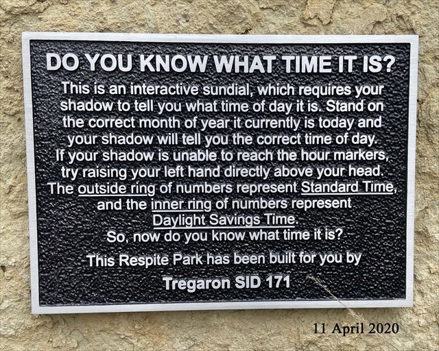 This is a small Respite Park adjacent to the Daniel Trail that runs through several Bellevue neighborhoods. What makes the park unique is the interactive sundial that uses your body to cast a shadow to tell the time. I tested the accuracy when I was placing the container and it was quite close to the correct time.