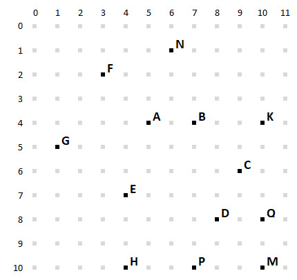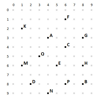 - De kortste afstand tussen 2 punten is een rechte lijn. Op de onderste kaart is de afstand tussen B en Q dus 5, en niet 7. Pythagoras is je vriend.