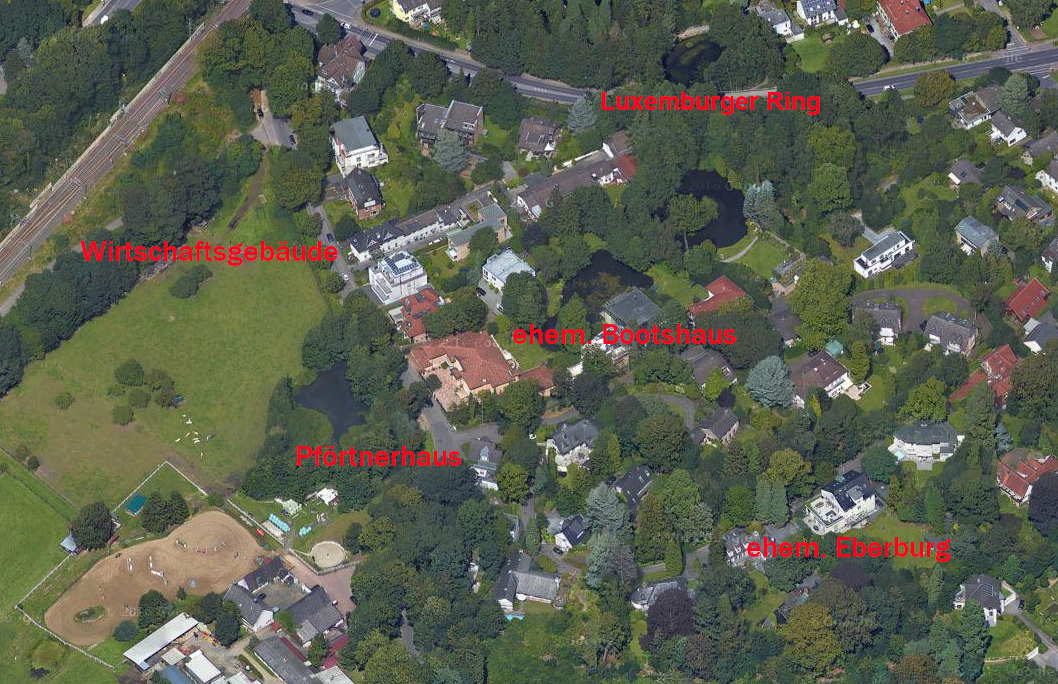 Der Startpunkt des Multis liegt am Eberburgweg. Die vermutlich Ende des 19. Jahrhunderts errichtete "Eberburg" war der Familiensitz der Aachener Tuchfabrikanten Delius. Das ehemals herrschaftliche Anwesen (heute Eberburgweg 77) ist nicht mehr als solches zu erkennen. Wer wissen möchte, wie es einmal ausgesehen hat, kann einen Blick auf Bild 23 der Diashow des Vereins abuta e.V. werfen. Neben Einblicken in den Öcher Bösch gibt es dort auch noch mehr interessante Bildergalerien. Von der Eberburg sind lediglich das Pförtnerhaus (Haus Nr. 89) und die Wirtschaftsgebäude (Haus Nr. 19) erhalten geblieben. Der schmiedeeiserne Zaun, der Euch auf dem Weg zu Wegpunkt Anton begleitet, bildete die Umgrenzung des Landgutes.