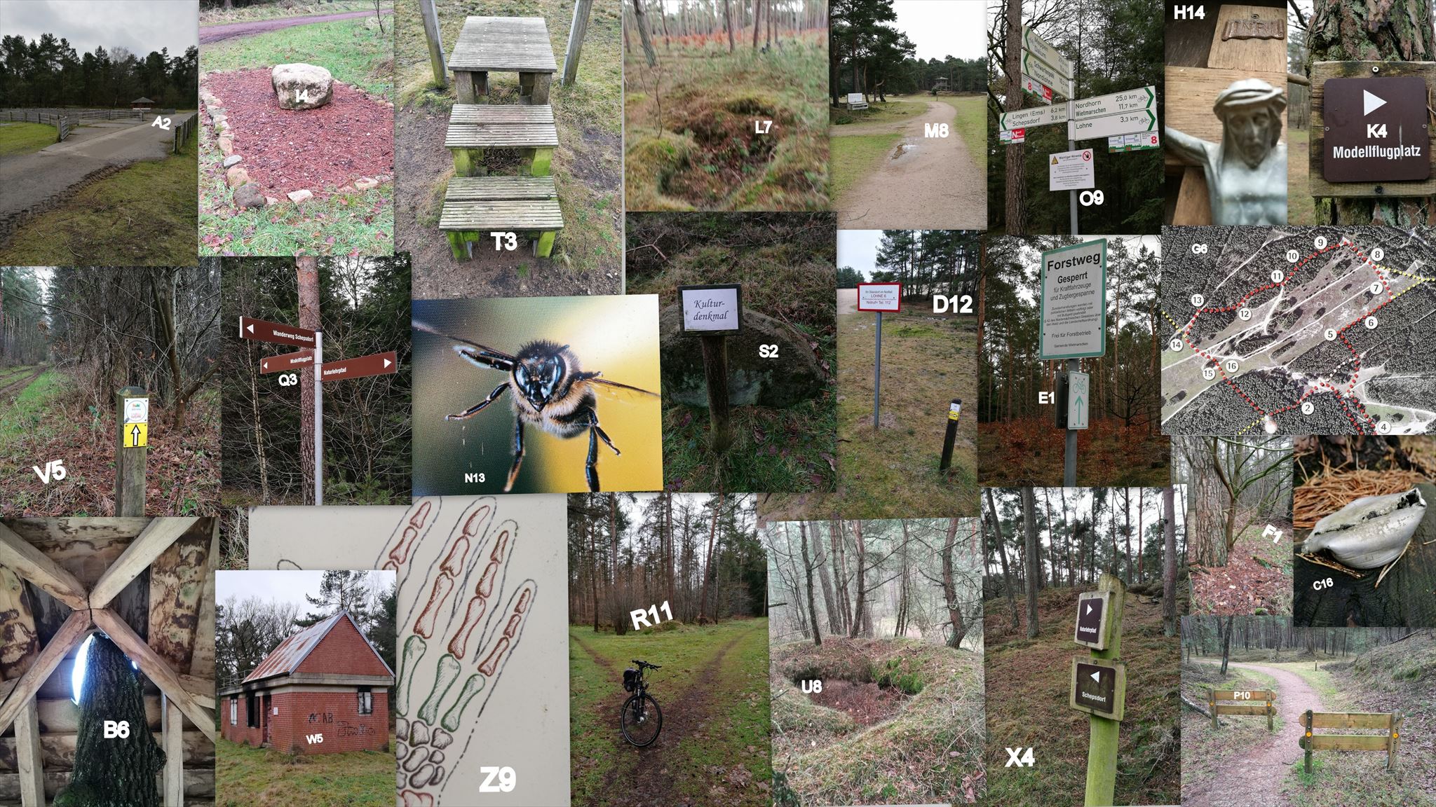Suche die Bilder und du kommst zum Ziel.Der Cache fängt an Station 1 an, parken kannst du an der gesamten Strasse bis zur Schranke.Die Buchstaben in den Bildern haben keine Bedeutung.